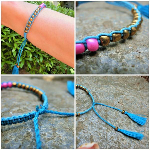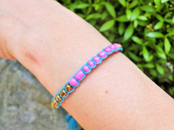 ネオンカラーの紐編み&ビーズのかわいいブレスレットです
