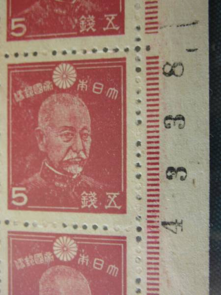 2次昭和 東郷 5銭 8枚ブロック 番号数字付き 格安