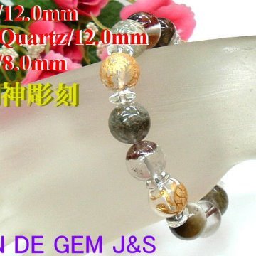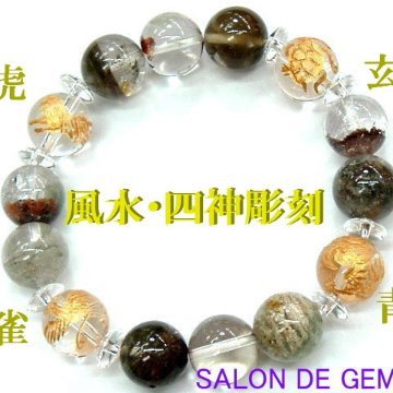【素材】:高級天然クリスタル(12.0mm)金四神彫刻