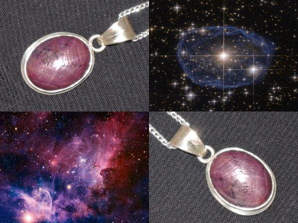 ★6条の星★スタールビー★天然石ペンダントネックレス天然コランダム宝石★オーバル銀シルバー925チェーン付レディースジュエリー kamesan