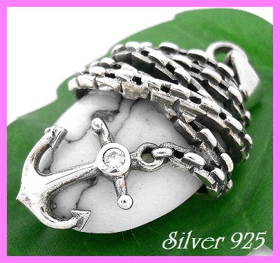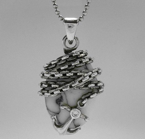 シルバー925銀のホワイトターコイズ ジルコニア付アンカー ペンダント