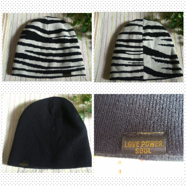 ☆LOVE POWER SOUL ☆ゼブラ柄☆ リバーシブル ☆ニット帽 ☆ワッチ☆