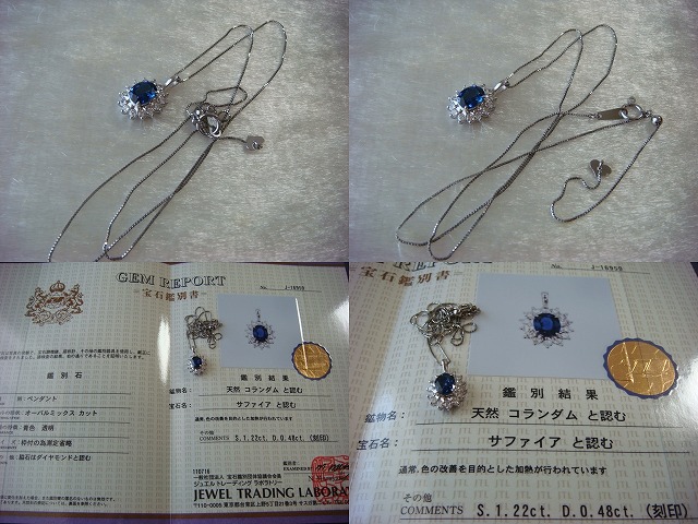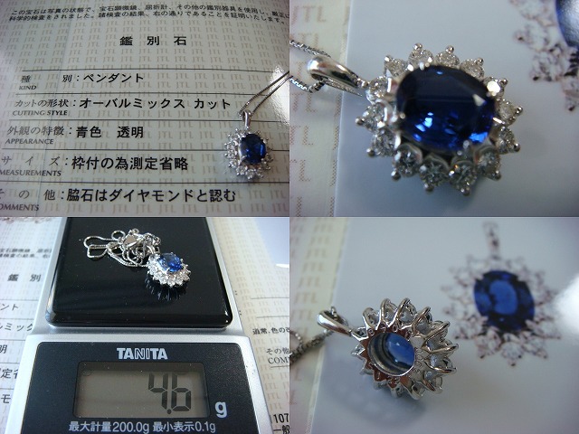 | ご覧頂きましてありがとうございます! 透明度のあるサファイヤ&ダイヤモンドペンダント プラチナ製です。Pt900の刻印入り。 サファイヤは1,22カラット。ダイヤモンドは0,48カラットです。 チェーンはプラチナ850製。長さは調節可能 最大45cm 全体の重さは約4,6gです。鑑別書付き。 新品のケースに入れてお届けいたします。 追加画像がありますのでパソコンでご確認ください。 宝石との出会いは一期一会です。『いいな』と思ったら是非、身につけてあげて下さい。きっと宝石も喜ぶことでしょう! 宝石は決して貴女を裏切りません。身につけた貴女を守ってくれることでしょう。 いつも頑張っている自分へのご褒美にいかがでしょうか? 良いものをひとつお持ち下さい。一生物のジュエリーとなります。 画像での判断は難しいと思いますが、落札後の返品、クレーム等の無きよう、ご自分の自己責任においてご入札下さい。 モニター、パソコン、カメラによって色や感じ方が変わりますのでご注意下さい。 商品についてはコレクター、質屋さん、お客様の委託品が中心ですので、ご質問の答えが遅くなる事がありますがご了承下さい。 商品説明につきましてはすべてをお知らせできませんので、質問にてお願いいたします。 基本的にはUSED品ですので、その点を十分にご理解の上ご入札下さい。 途中で出品を取り下げる場合もありますがご了承下さい。 尚、トラブル回避の為、申し訳ございませんが、新規の方及び評価によってはこちらで入札を削除させていただく場合もございますが、ご理解下さい。 メールの確認は夜になりますのでご連絡が遅くなることもありますがご了承願います。 品物にも人と同じように『こころ』があると思います。喜んでいただけることが私にとっても品物にとっても一番良いことだと思います。 『落札したけど気に入らなかった』ということが無いように十分にお考えになってからご入札下さい。 発送は宅配便を予定しております。また発送には2,3日かかる場合もございますが、ご了承願います。 お互いに気持ちよい取引のため、落札後3日以内のご連絡、5日以内のご入金頂けない場合は申し訳ございませんが取り消しさせていただきます。 落札金額より僅かですが『子ども虐待防止 オレンジリボン運動』へ寄付をさせていただきますがご了承お願いいたします。 | |
