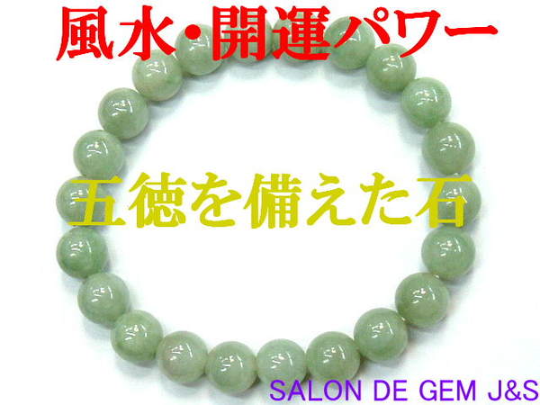 【新品】【翡翠】【五徳を備えた石】【高級天然グリーン翡翠(ジェダイト) 風水・開運ブレスレット】【J 約8.0mm】【内径:約15cm】【浄化済商品】【赤字大処分】【本数限定】【収納ポーチ付】【製作元オークション】