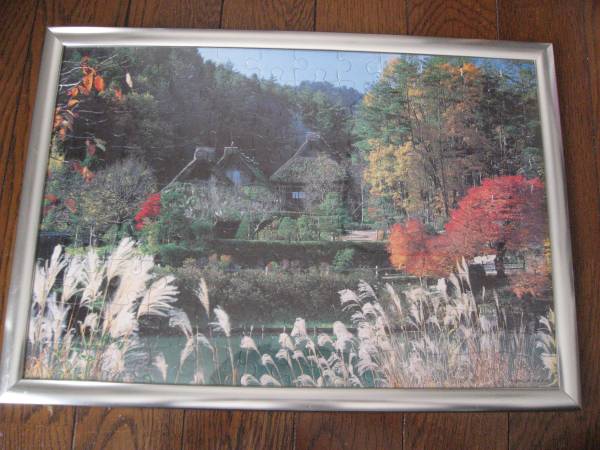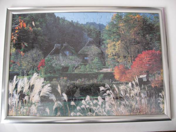 【中古美品・即決・匿名発送】 アルミ・フレイム付 紅葉とかやぶきの里  サイズ: 横:約41cm、 縦:約29cm