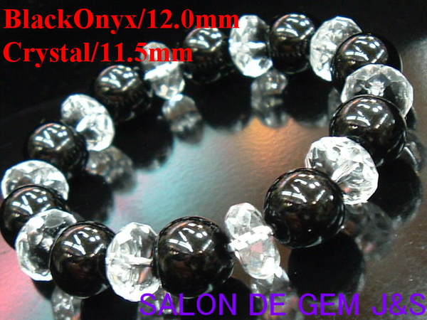 【心身のバランスを保つ】【高級天然ブラックオニキス/天然クリスタル 2025年風水・開運ブレスレット】12.0-11.5mm/15cm