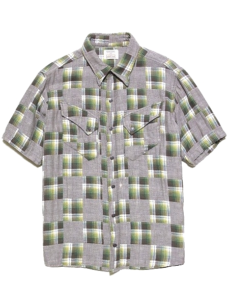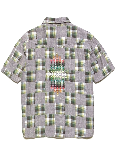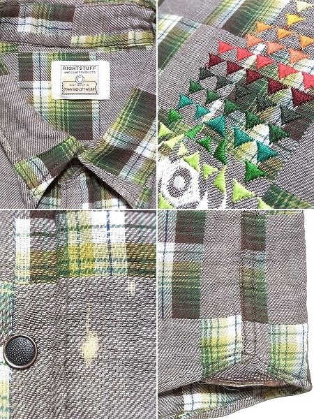 RIGHTSTUFF ライトスタッフ OPEN CHAKRA ネイティブ刺繍 パッチワークチェック ダブルガーゼ 半袖シャツ Lサイズ