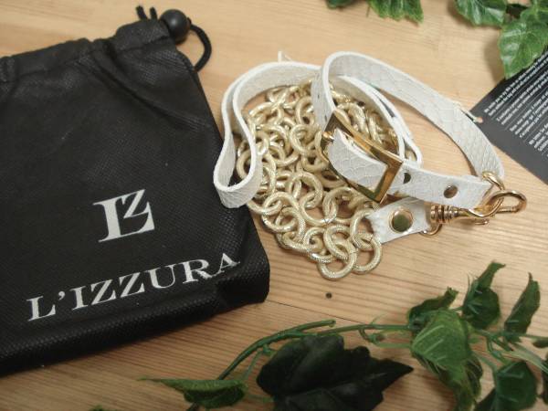 ホワイトの型押しデザインと、ゴールド色のチェーンリードが高級感のあるアイテムとなっております(*^_^*)