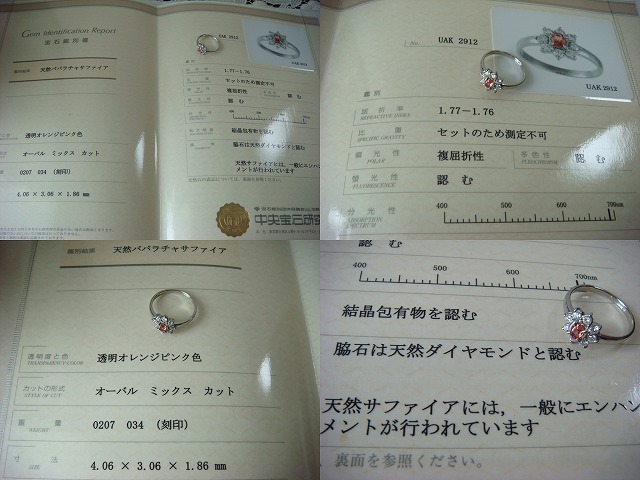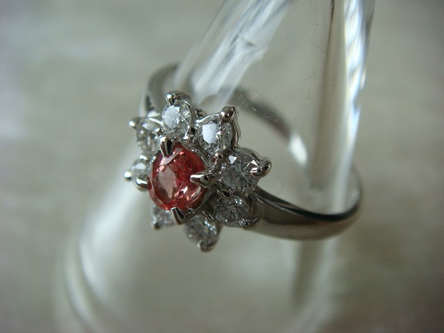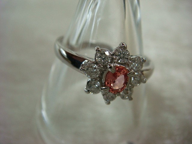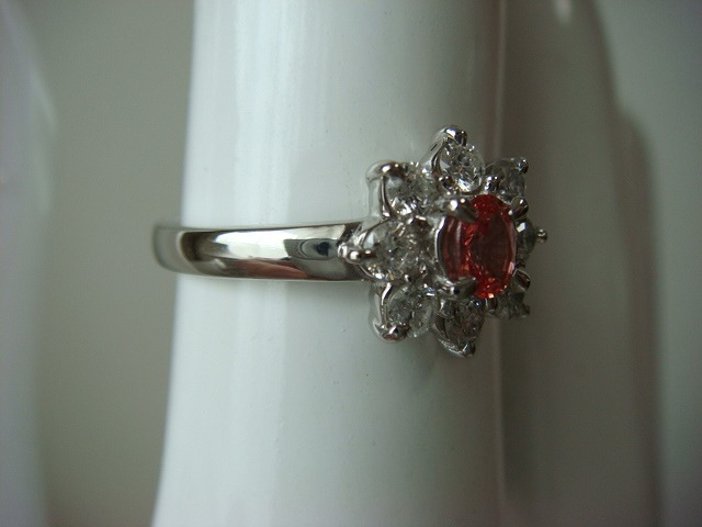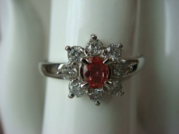 ご覧頂きましてありがとうございます! パパラチアサファイヤの指輪です。サイズは約12,5です。パパラチアサファイヤは0,207カラットです。ダイヤは0,34カラットです。 プラチナ900製です。Pt900、0207、034の刻印入り。重さは約3,6gです。鑑別書付き。 追加画像がありますのでパソコンでご確認ください。 宝石との出会いは一期一会です。『いいな』と思ったら是非、身につけてあげて下さい。きっと宝石も喜ぶことでしょう! 宝石は決して貴女を裏切りません。身につけた貴女を守ってくれることでしょう。 いつも頑張っている自分へのご褒美にいかがでしょうか? 良いものをひとつお持ち下さい。一生物のジュエリーとなります。 画像での判断は難しいと思いますが、落札後の返品、クレーム等の無きよう、目利きの方、お解りになる方、面白そうだなと思った方、ご自分の自己責任においてご入札下さい。 モニター、パソコン、カメラによって色や感じ方が変わりますのでご注意下さい。商品についてはコレクター、質屋さん、お客様の委託品が中心ですので、ご質問の答えが遅くなる事がありますがご了承下さい。 商品説明につきましてはすべてをお知らせできませんので、質問にてお願いいたします。 基本的にはUSED品ですので、その点を十分にご理解の上ご入札下さい。途中で出品を取り下げる場合もありますがご了承下さい。 尚、トラブル回避の為、申し訳ございませんが、新規の方及び評価によってはこちらで入札を削除させていただく場合もございますが、ご理解下さい。 メールの確認は夜になりますのでご連絡が遅くなることもありますがご了承願います。 品物にも人と同じように『こころ』があると思います。喜んでいただけることが私にとっても品物にとっても一番良いことだと思います。 『落札したけど気に入らなかった』ということが無いように十分にお考えになってからご入札下さい。 発送は宅配便を予定しております。また発送には2,3日かかる場合もございますが、ご了承願います。 落札金額より僅かですが『子ども虐待防止 オレンジリボン運動』へ寄付をさせていただきますがご了承お願いいたします。 | |