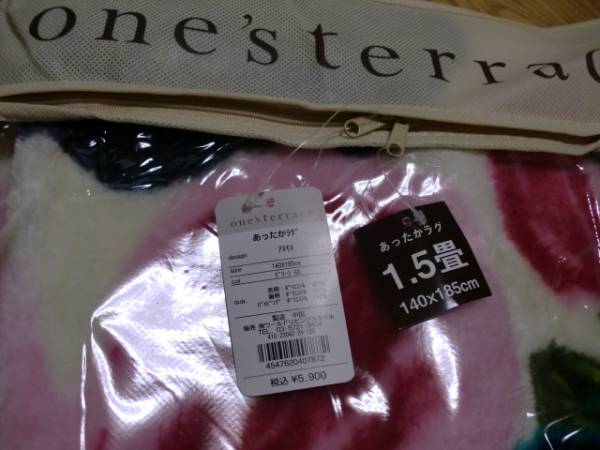 ワンズテラスで買いました。(税込\5900) ビニールの外袋に何か写った印字の汚れがあります。未使用ですが絵柄を撮るのに広げています。裏面の片隅を撮っていますので画像2枚目をご覧下さい。