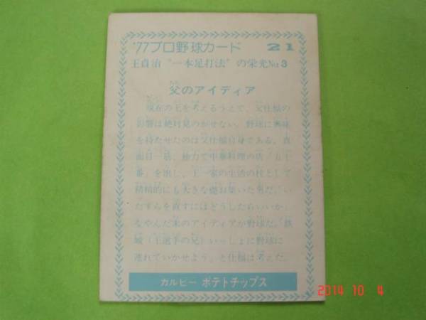 *カルビー 77年プロ野球カード NO.21 (王/巨人) 青版 *