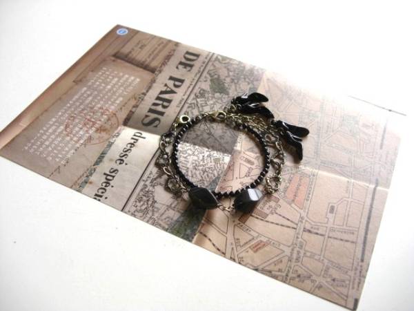 アンティーク仕様・・シリーズです♪大人色の黒・・シックな漆黒のオニキスのブレスレット2点セットです♪画像のように重ねても単品でも楽しんでいただけます♪丸玉やツイストナツメのオニキスにデザインチェーンを合わせてクラシカルな表情です♪3ミリ位の丸玉のオニキスのブレスレットは黒のハイヒールのチャームを添えて可憐な表情です♪長さは16センチ+アジャスター6センチで最長22センチ位です♪8ミリ×17ミリのツイストナツメのオニキスはハートのデザインチェーンを合わせました♪長さは全長23センチ位で調節自由です♪それぞれ単品やネックレスも出品しています♪シンプルで長く着けていただけるデザインを考えて作りました!ハンドメイドをご理解頂いてノークレーム、ノーリターンでお願いします