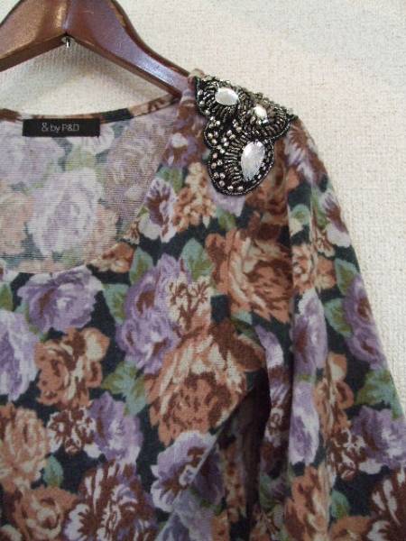 | 商品名 | &byP&D深緑バラ柄肩ビジュー付7分袖ニットカットソー(USED)91914 |