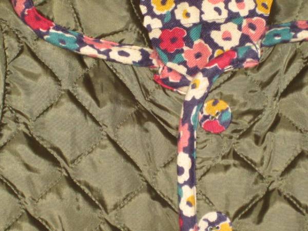 表地はカーキのナイロン地で、裏地は花柄の綿素材になってます。
