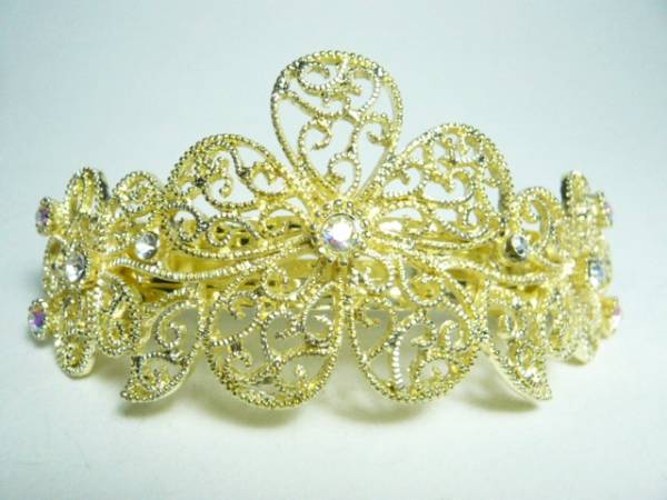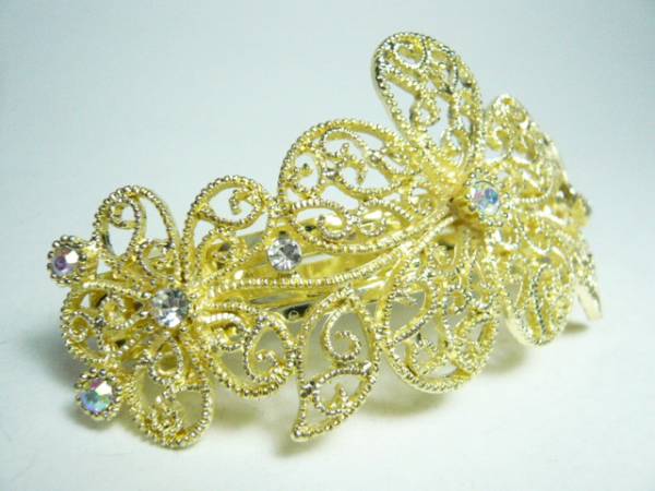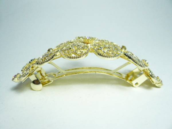 ラインストーン 透かし柄 3個花 バレッタ ゴールド