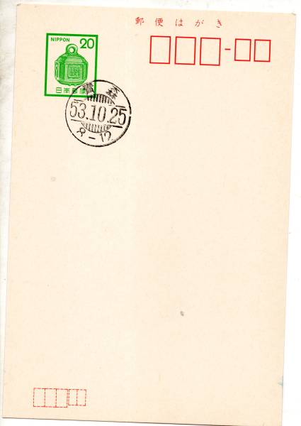 t1619櫛型印/青森53.10.25/駅鈴はがき/