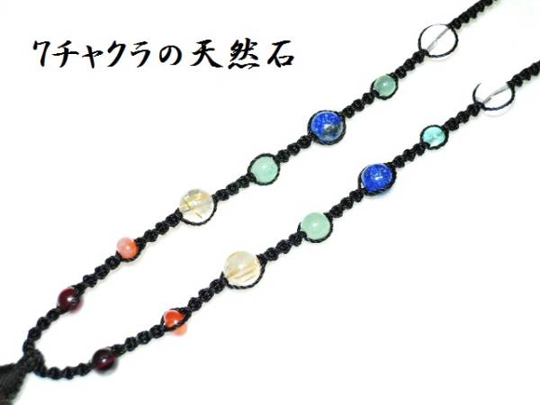 一緒に編みこんである石は、7チャクラに対応するヒーリングストーンです。