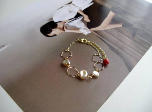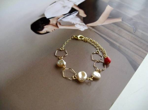 春の予感・・シリーズです♪お気に入りのチェーン・・個性的なデザインリングに芥子パールを合わせてスタイリッシュなブレスレットです♪12ミリ位のリング、10ミリ位の芥子パールに華奢なチェーンを合わせました♪長さは16センチ+アジャスター6センチで最長22センチ位です♪お揃いのネックレスやピアスも出品しています♪シンプルで飽きのこないいつまでも着けられるデザインを考えて作りました!ハンドメイドをご理解頂いてノークレーム、ノーリターンでお願いします