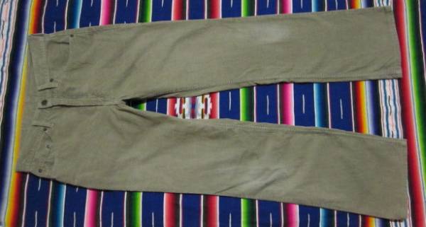 カラーは カーキ、サイズ表示は W32、実測は ウェスト79㎝、股下81㎝、股上26cm、裾幅23cm