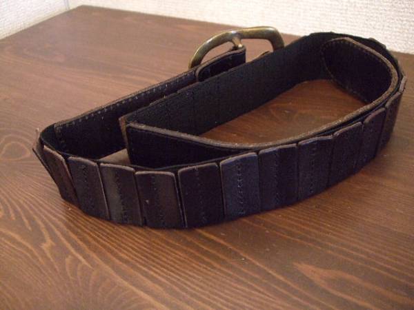 | 商品紹介 | ワンピースの見せベルトとしてご利用するとアクセントになって可愛いです。 中央はゴムに革を小さく切って縫い付けている作りになっています。 表記がありませんが 牛革だと思います。 |