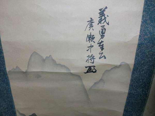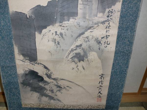 【模写】 掛軸 万里の長城之圖 画讃 廣瀬中将高橋大佐 木箱 日本軍
