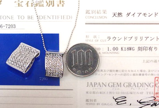 ♪輝きの良い、上質【天然ダイヤモンド:1カラット】を【K18WG】製のプレートに敷き詰めたペンダント!