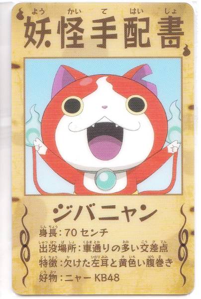 妖怪タウンの妖怪ルーレットバトル!!の賞品の 妖怪手配書 【ジバニャン】です。