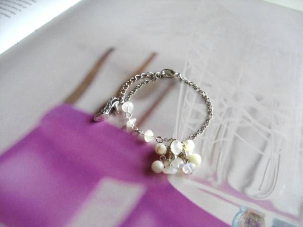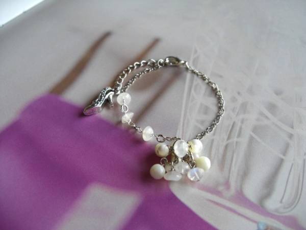 愛らしさのスパイス・・シリーズです♪幻想的な白・・神秘的な白のムーンストーンのブレスレットです♪ロンデルのムーンストーンにマザーオブパールを合わせてロマンチックな表情です♪本体に6×4ミリのロンデルのムーンストーン、トップに4ミリ、6ミリの丸玉のマザーオブパール、6×4ミリのムーンストーンを合わせました♪長さは16センチ+アジャスター6センチで最長22センチ位です♪お揃いのブレスレットやネックレス、ピアスも出品しています♪シンプルでいつまでも着けられるデザインを考えて作りました!♪ハンドメイドをご理解頂いてノークレーム、ノーリターンでお願いします