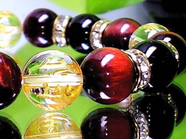 金彫り七種梵字水晶・赤虎目レッドタイガーアイ・黒瑪瑙開運