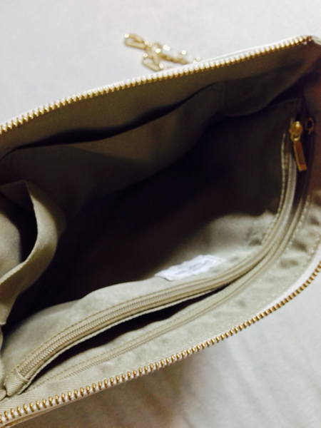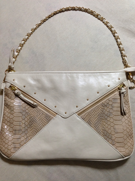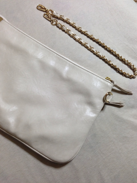 付嘱チェーンの長さ約60cm。写真にはありませんが、取り外し可能な同じホワイトカラー同素材の別ショルダー有り。