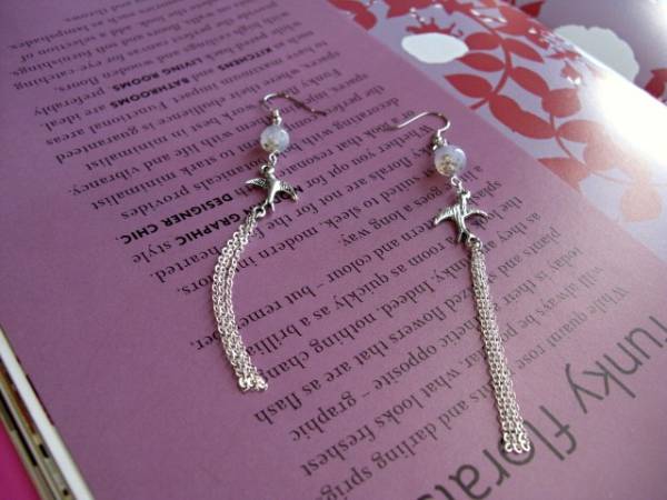 オリエンタル・ガール・・シリーズです♪可憐な水色・・繊細なブルーレースのピアスです♪儚げな水色のブルーレースに神秘的な小鳥さんのチャームを合わせてロマンチックな表情です♪8ミリの丸玉のブルーレースに小鳥さんのチャームや華奢のチェーンを合わせました♪長さは全長11センチ位です♪イヤリングにも変更出来ます♪お揃いのネックレスやブレスレットも出品しています♪シンプルで飽きのこないいつまでも着けられるデザインを考えて作りました!ハンドメイドをご理解頂いてノークレーム、ノーリターンでお願いします