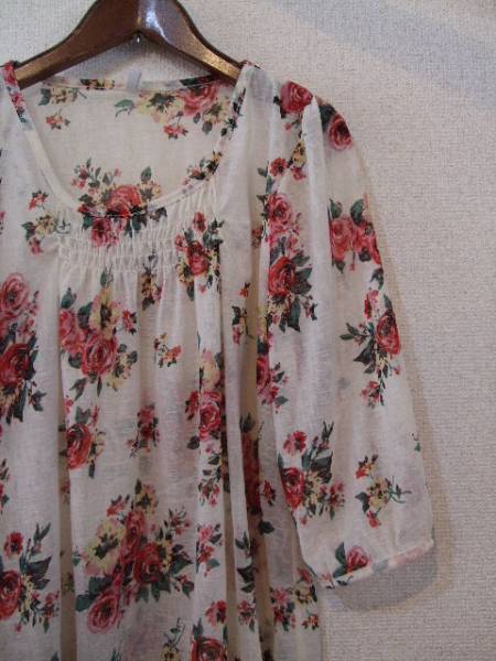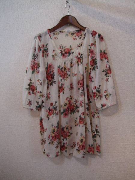 商品名 | バラ柄シフォン7分袖チュニック(USED)13114 |
