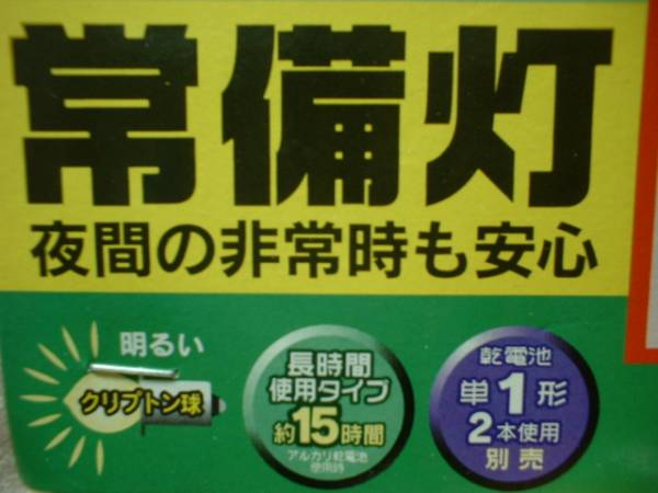 常備灯:オーム電機。長時間使用タイプ(アルカリ電池使用時約15時間)明るいクリプトン球。