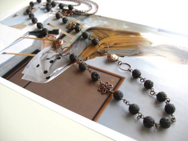 オリエンタル・ガール・・シリーズです♪シックな猫さん・・存在感のある漆黒のラバーストーンにお洒落な猫さんやフラワーリングのチャームを合わせてアンティークモダンな表情です♪ラバーストーンは8ミリの丸玉、猫さんは11ミリ位のメタルチャームです♪長さは全長105センチ位で調節自由です♪2連にされても素敵です♪お揃いのブレスレットも出品しています♪シンプルで飽きのこないいつまでも着けられるデザインを考えて作りました♪ハンドメイドをご理解頂いてノークレーム、ノーリターンでお願いします