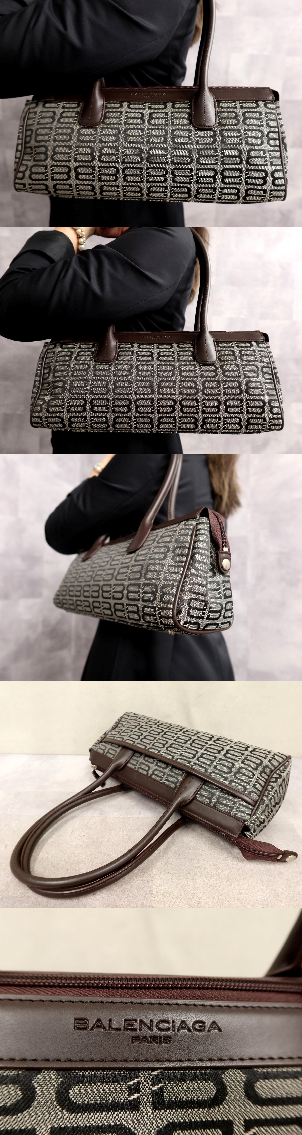 ●超美品●新品同様●BALENCIAGA バレンシアガ●キャンバス カーフ レザー 本革●ハンド バッグ●ブラウン グレー●シルバー金具●Js65412
