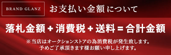 | 出品者情報 | ◆古物営業許可番号◆ 北海道公安委員会許可 第101040001652号 ◆名 称◆ 株式会社 グランツ ◆所在地◆ 北海道札幌市東区北40条東9丁目3-24 ◆電話番号◆ 011-299-6514 ◆E-Mail◆ brand_glanz@ybb.ne.jp |
