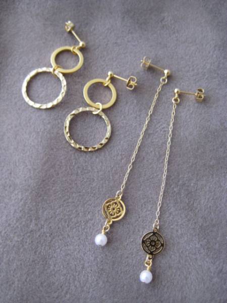 ◆透かしロングチェーンピアス◆フラワー 花 華奢チェーン 上品 ゴールド スカシ レース プチパール 小粒パール 縦長チェーン 揺れる 軽量