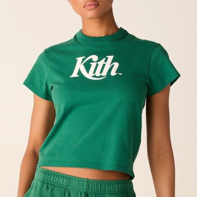 本作は、230GSMコットンジャージーで作られており、リブ編みのネックラインと胸元のKithアートワークが特徴です。