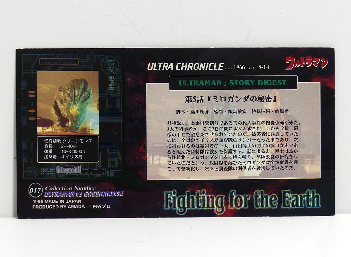 1996年 アマダワイドコレクション 空想特撮シリーズ 017 第5話「ミロガンダの秘密」ウルトラマン vs グリーンモンス■トレカ