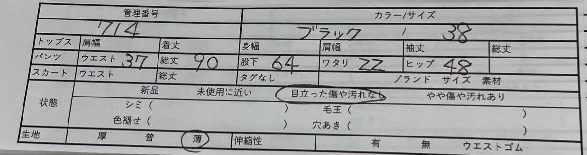ウエスト 約37cm/ヒップ 約48cm/股下 約64cm/総丈 約90cm/わたり 約22cm