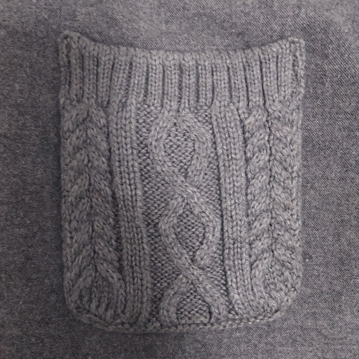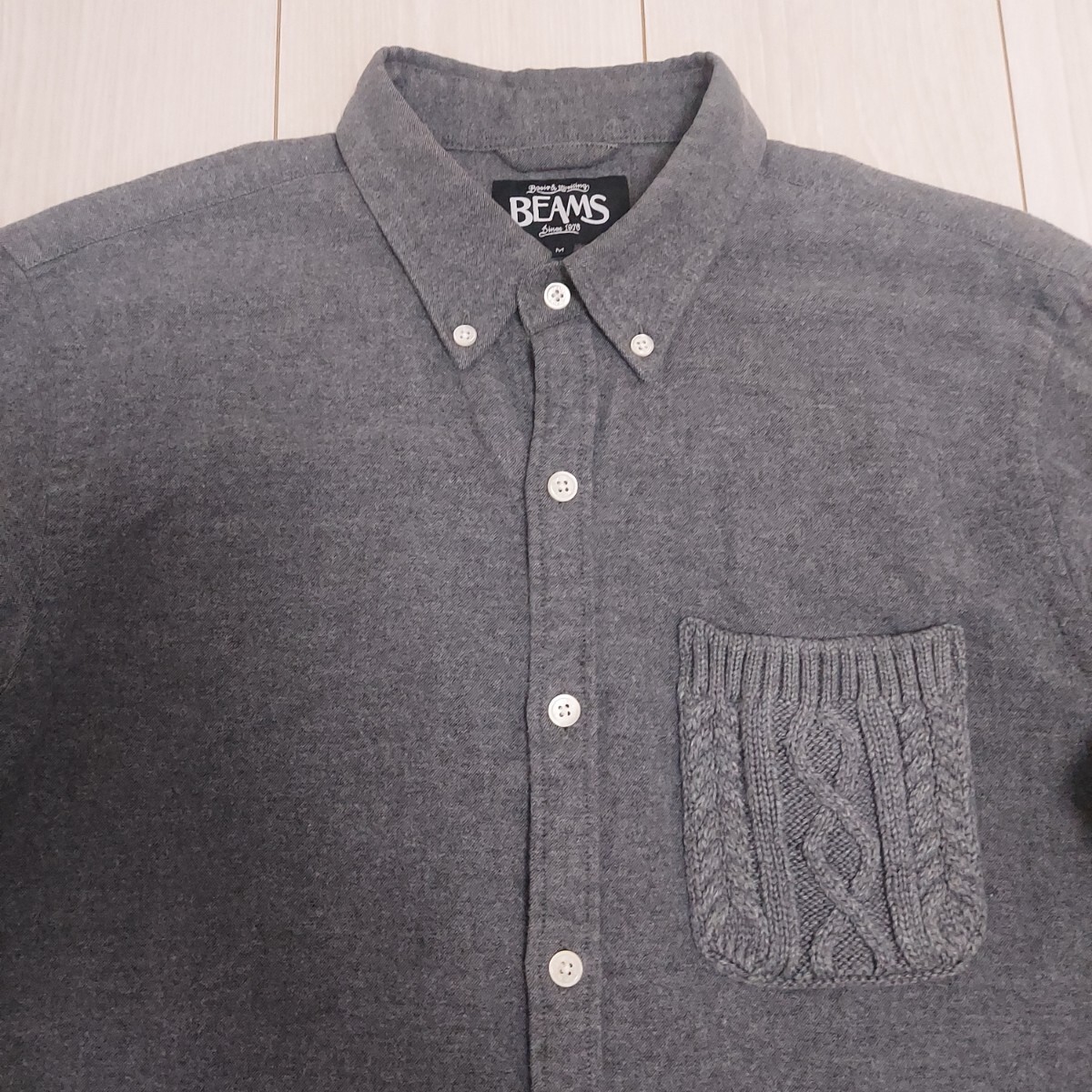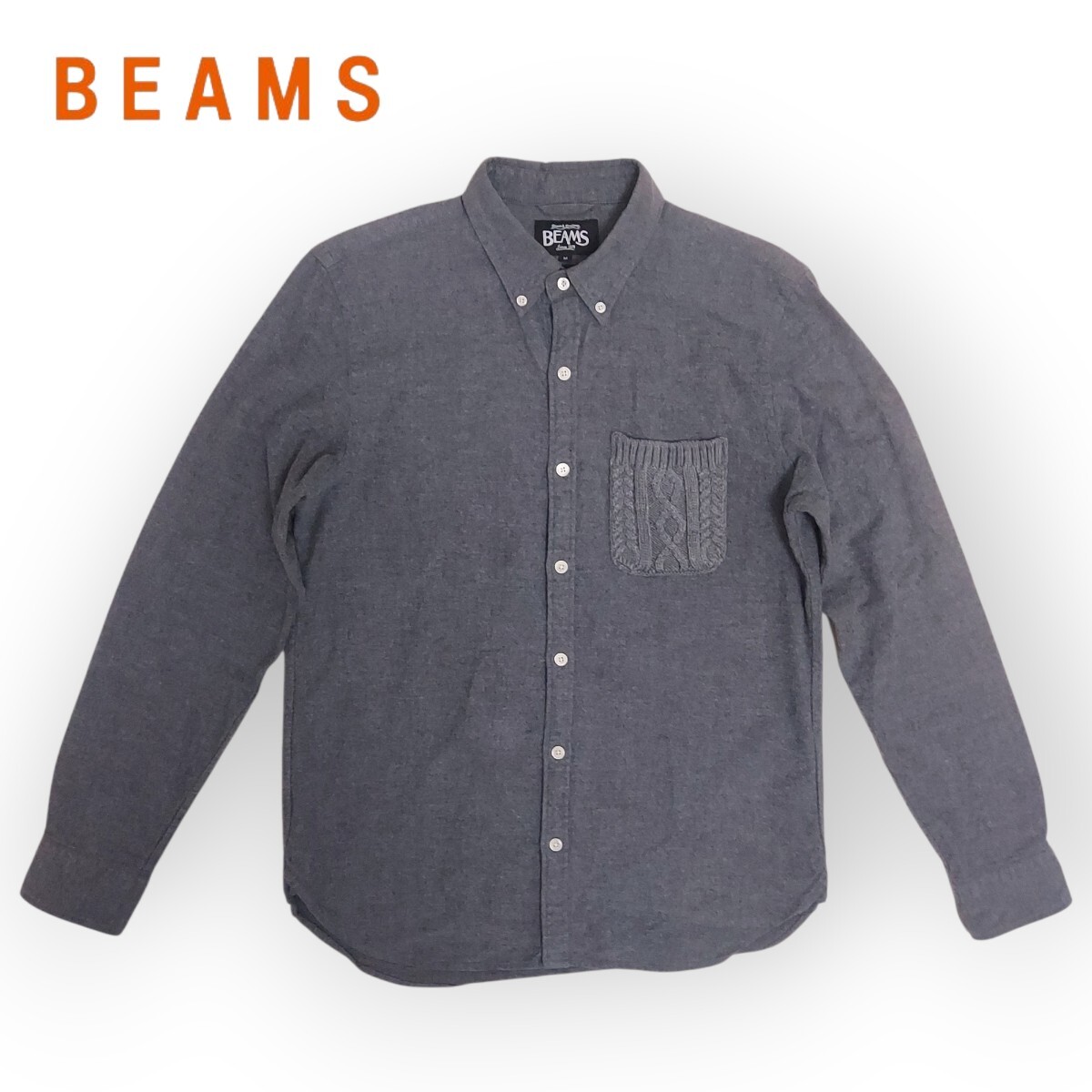 シンプルなデザインの中に配されたケーブルニットのポケットがアクセントになったミニボタンダウンシャツ。