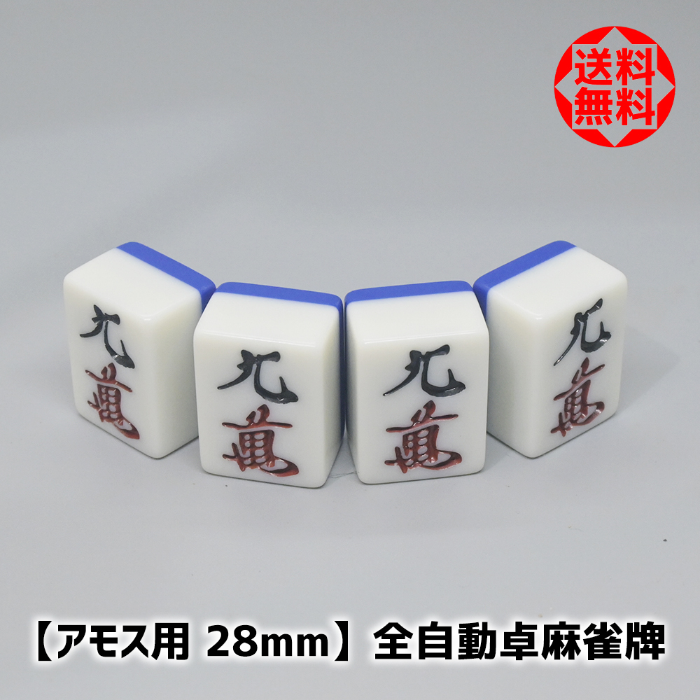 【アモス用 BN牌 28mm】全自動卓麻雀牌 紛失牌代用、牌さばき練習、DIYなどに 9萬(ワン)×4牌 背面ブルー