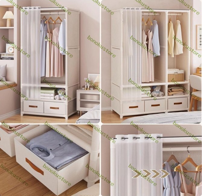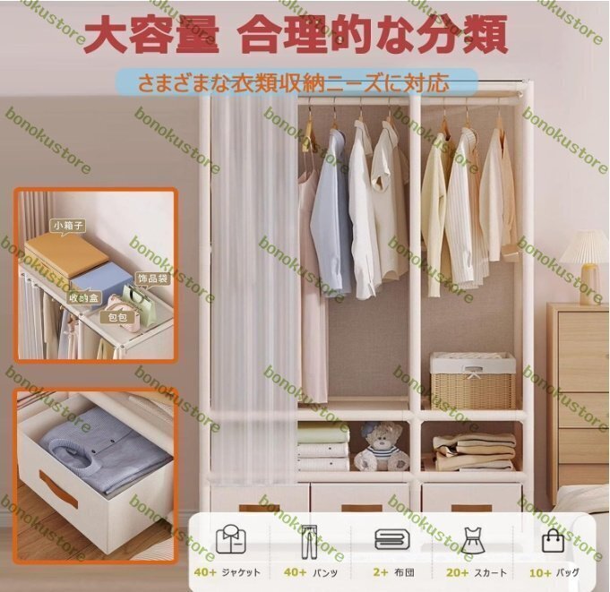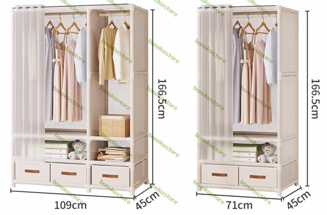 商品説明 この商品について【大容量ワードローブクローゼット】幅109×奥行45×高さ166.5cm//幅71×奥行45×高さ166.5cm。豊富な収納スペースがあり、衣類はもちろん、箱物などをまるごと収納出来可能です。部屋に収衣類はもちろん小物や箱物もしまえます。軽量で簡単に組み