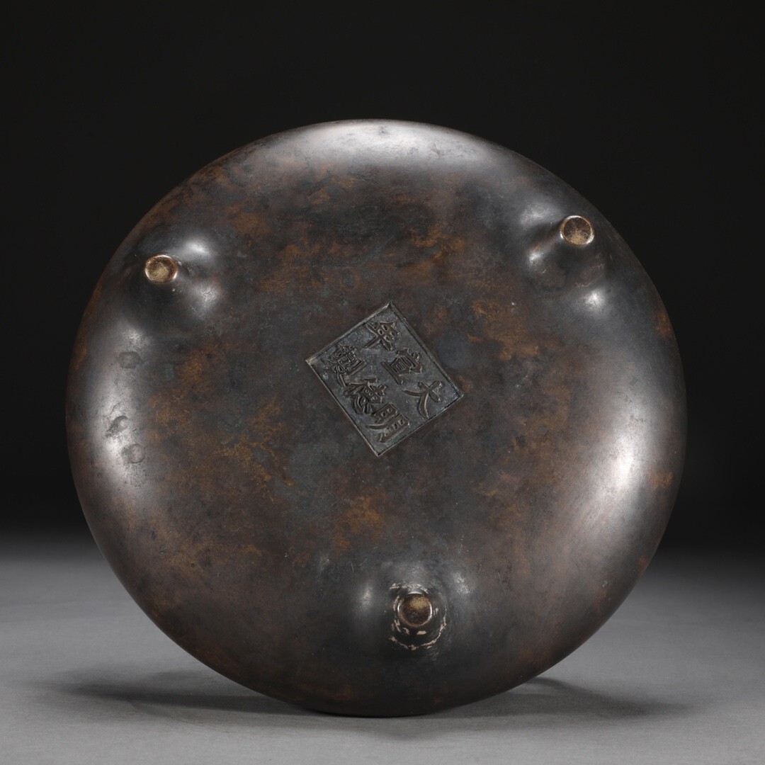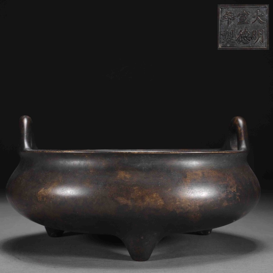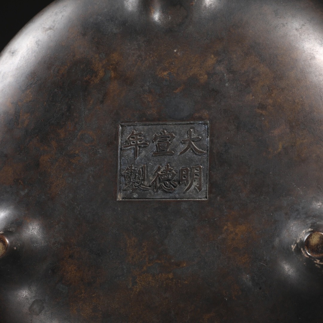 【永】明時代 宣德年製 古銅製 沖天耳爐 極細工 古銅彫 置物擺件 古美術品 古董品 収集 古美味 旧家蔵出 中国唐物 A15