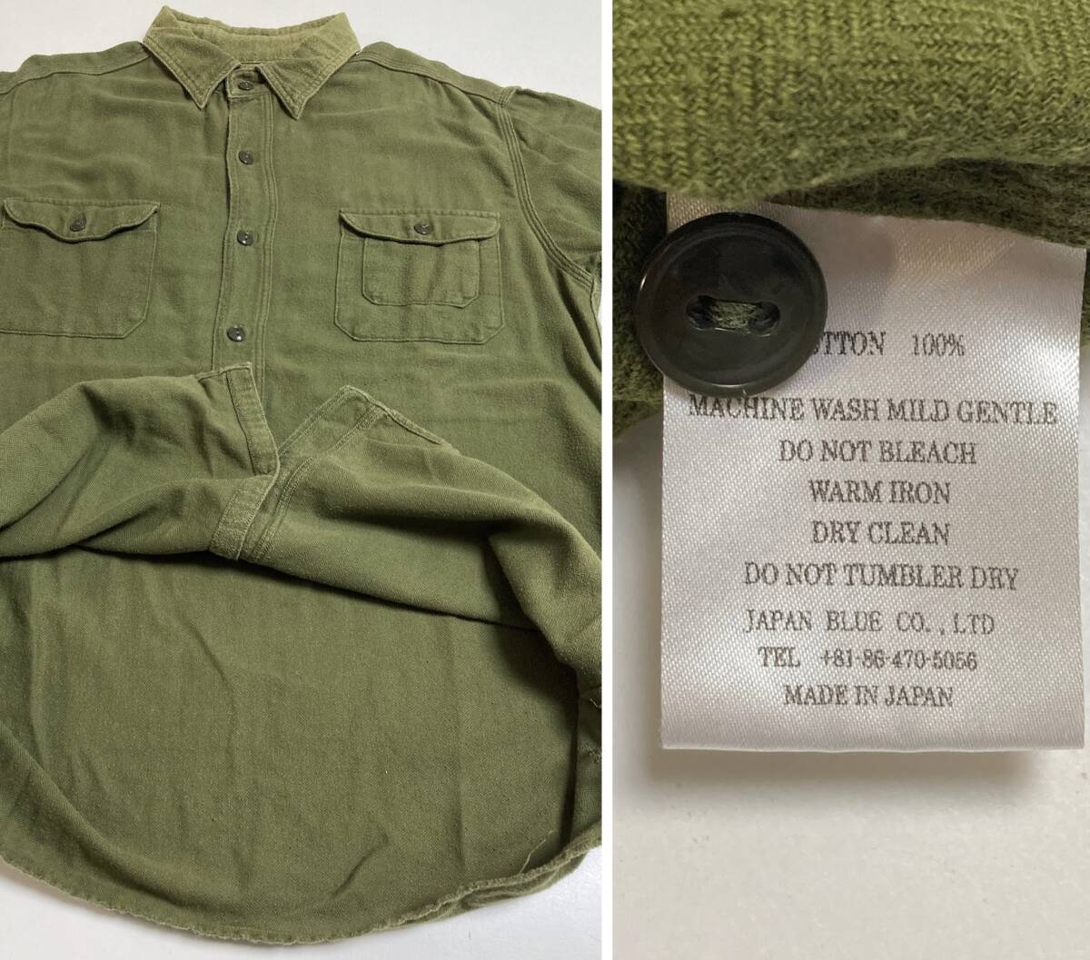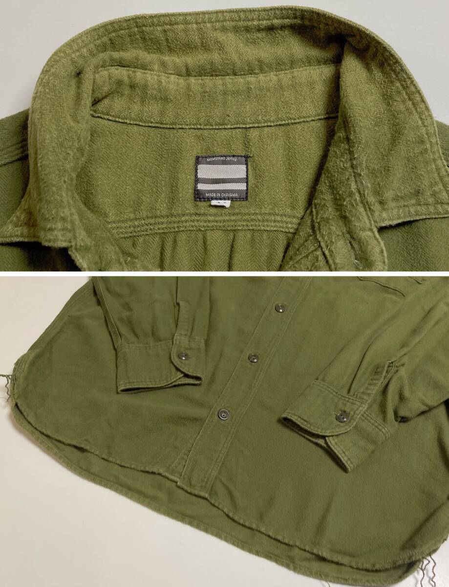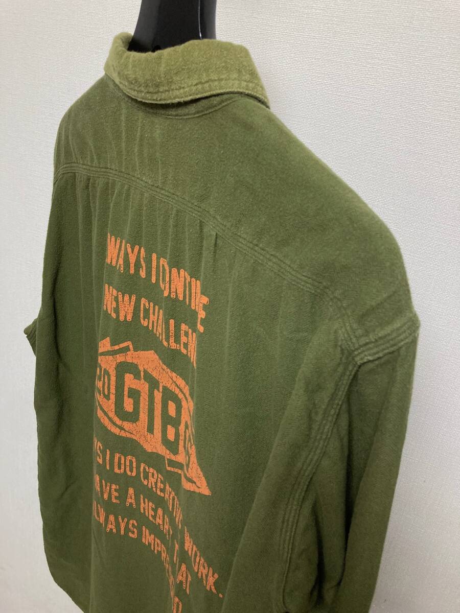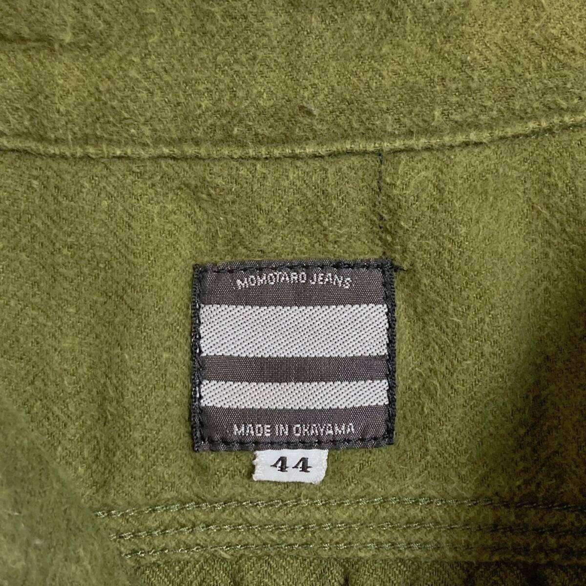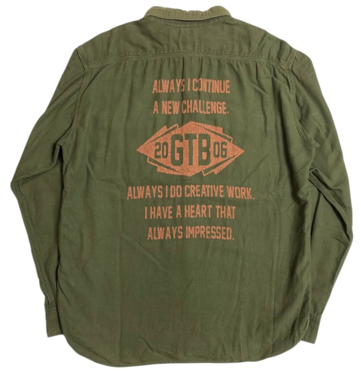 | ★ 桃太郎ジーンズ グリーン系 44 バックプリント ワークシャツ MOMOTARO JEANS 長袖 シャツ ミリタリー ★ |
