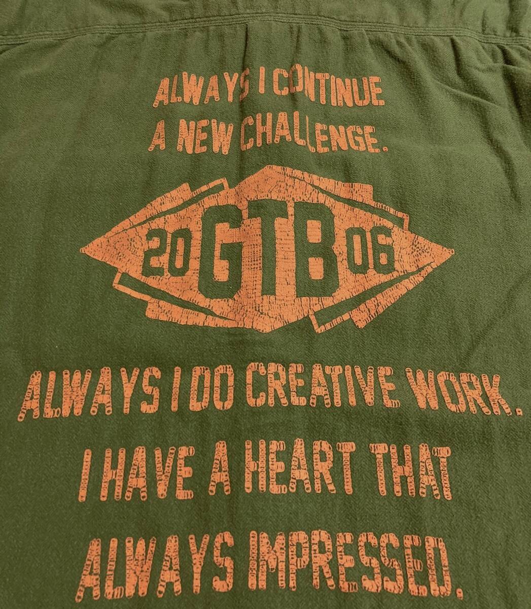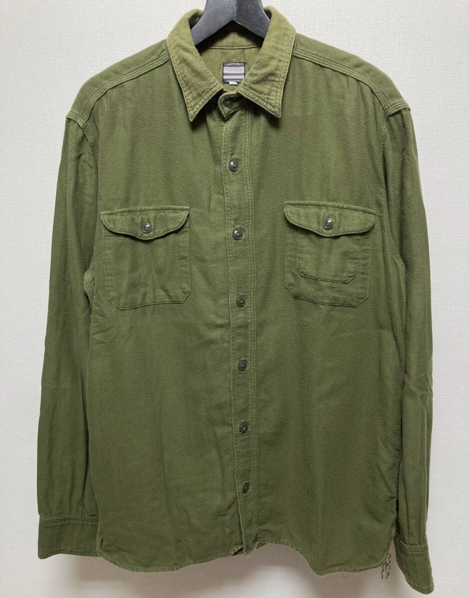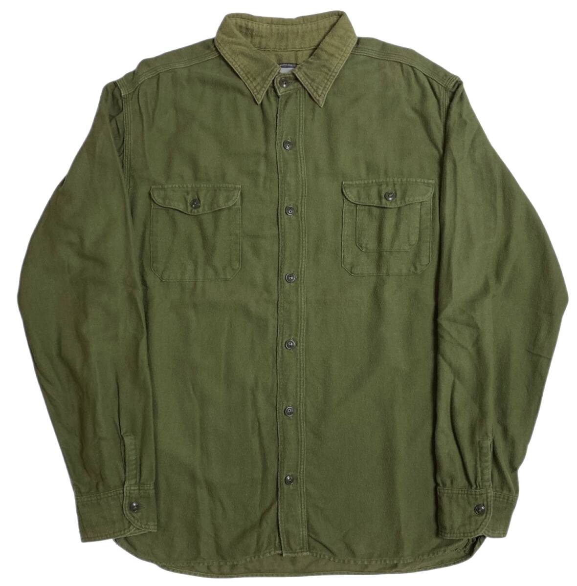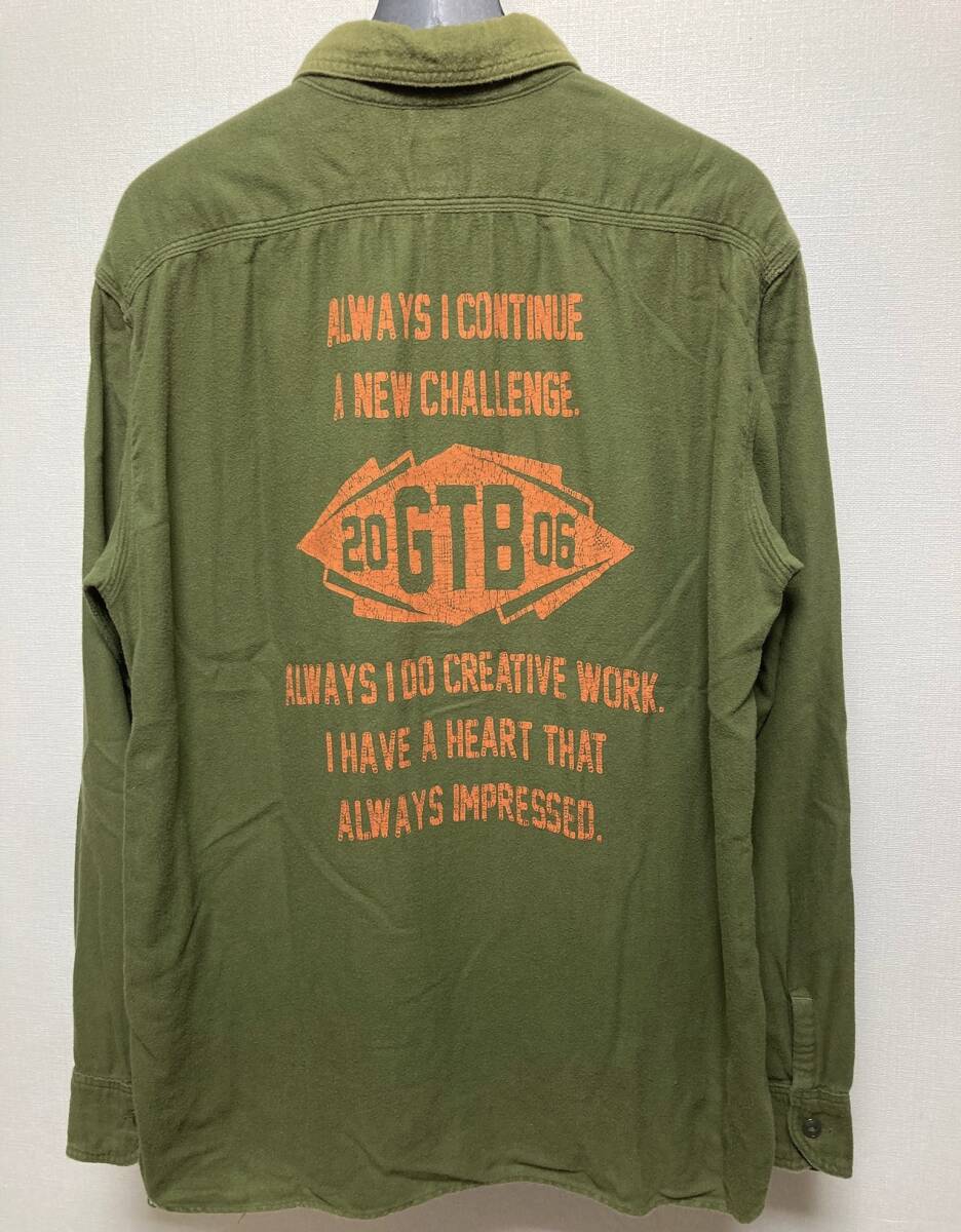 | ★ 桃太郎ジーンズ グリーン系 44 バックプリント ワークシャツ MOMOTARO JEANS 長袖 シャツ ミリタリー ★ |