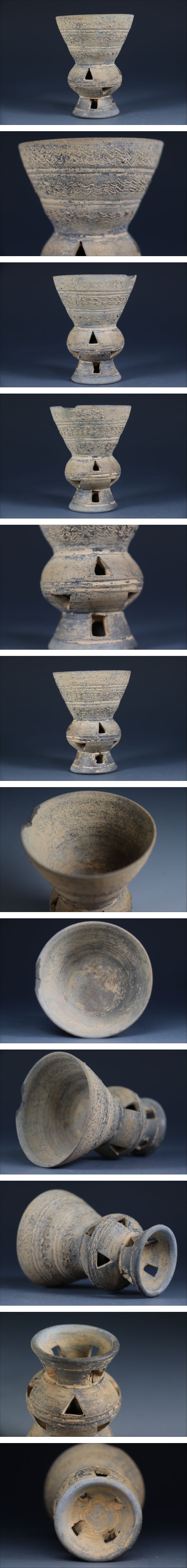 商品説明 | 商品名:蔵出し品 新羅時代 古朝鮮 波状文 広口壷 付属品:なし。 サイズ:高さ9,4cm、口径7,4cm、高台4,6cm。 状態:経過のスレ、欠けがございます。 |