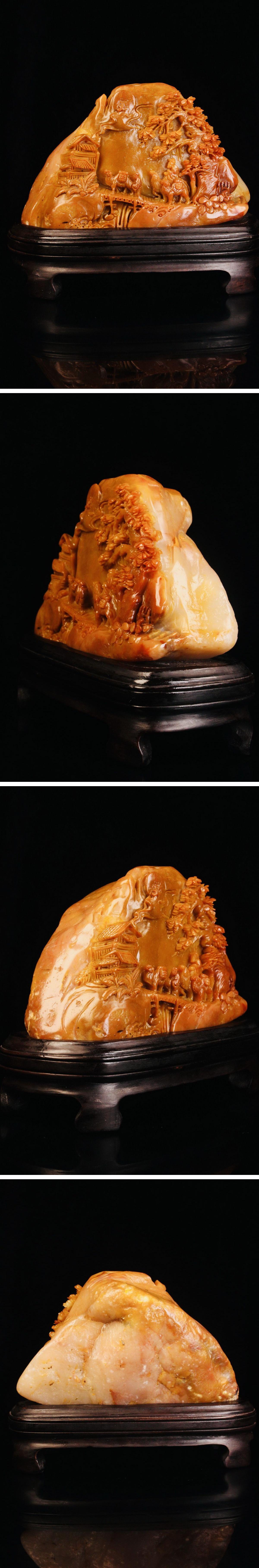 【清】某収集家放出品 時代物 寿山田黄石 山水人物紋置物 材質保証 中国伝来 当時物保証 古美術 骨董品7L10-PF2