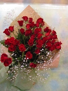 送料ゼロ円【すべてコミ・コミ】赤バラ20本花束10/6着~11/30着 期間!リボンラッピングメッセージ付 長さ40cm