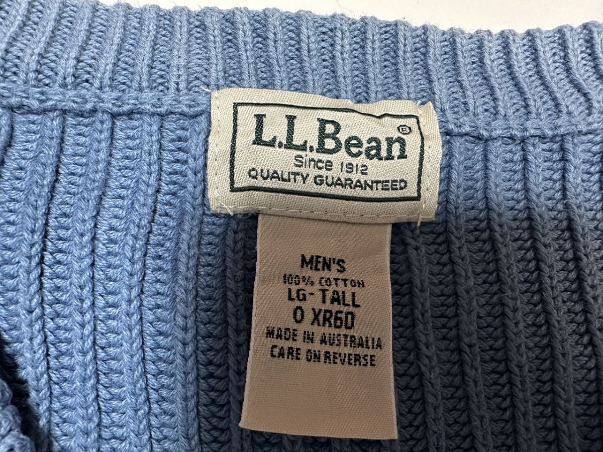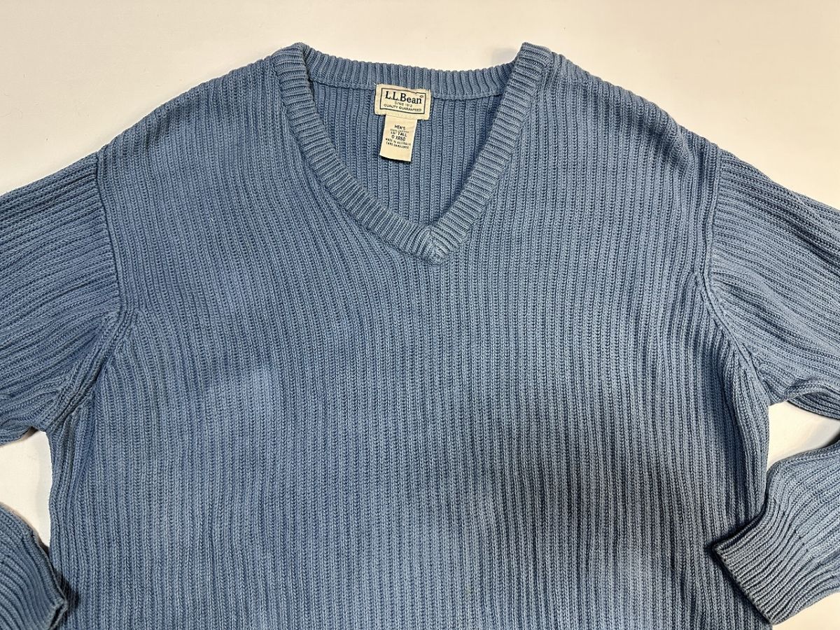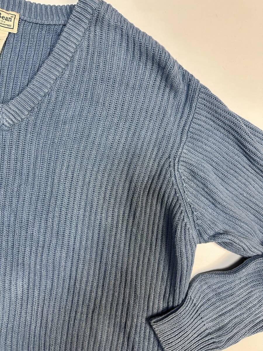 ●US USED US古着 L.L.Bean エルエルビーン 90s 90年代 コットンニット Vネック ミドルゲージ ブルー青水色【L】
